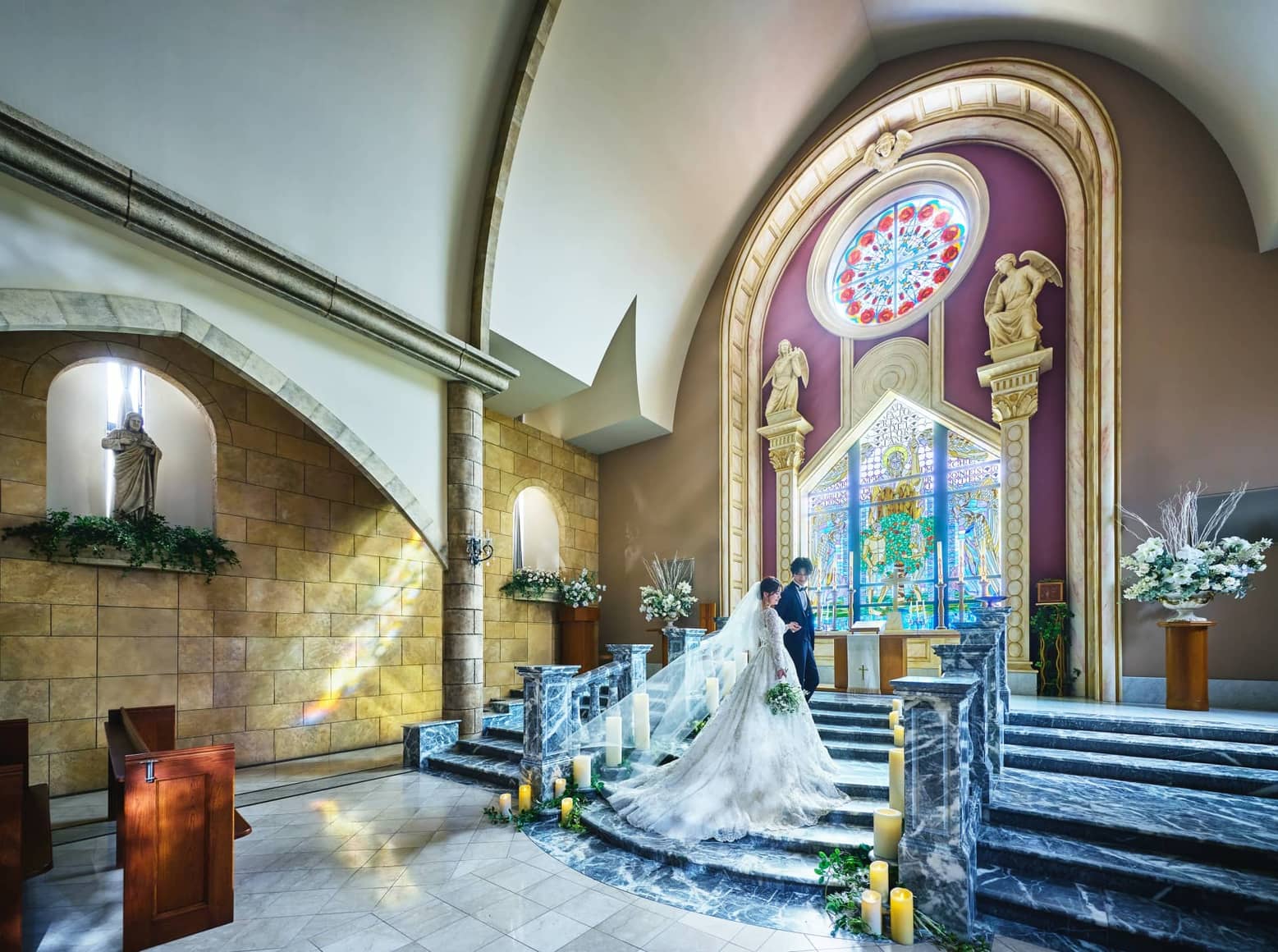 荘厳なステンドグラスが迎える「聖パウロ大聖堂」での挙式と、パリのプチメゾンのようなホールでのパーティー。